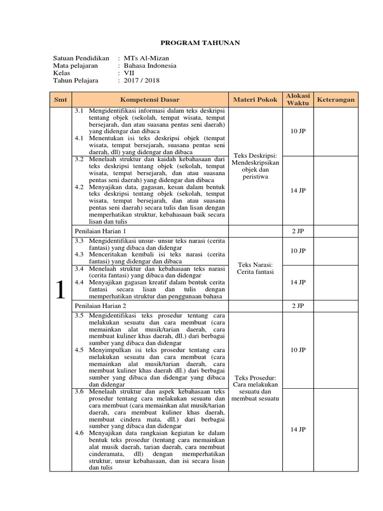Prota Dan Promes Bahasa Indonesia Smp Kelas 7 Kurikulum 2013