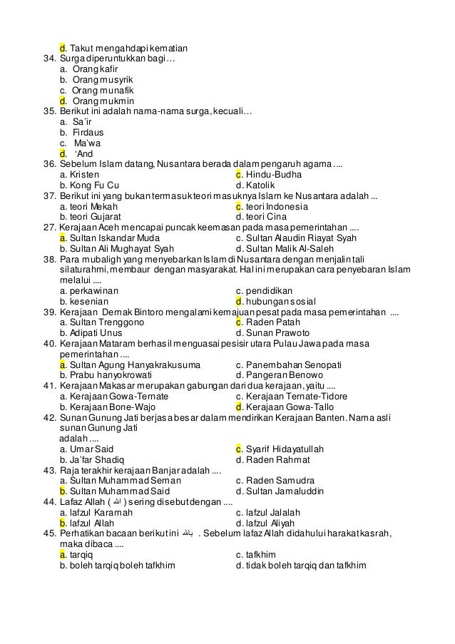 Soal Dan Jawaban Pilihan Ganda Pendidikan Agama Islam Smp Kelas