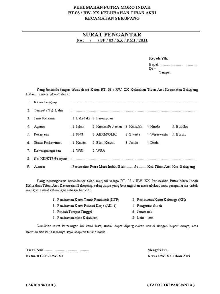 Contoh format surat keterangan tidak sengketa dari. Surat keterangan domisili ini biasanya dikeluarkan oleh pihak kelurahan, mulai dari pejabat terendah yaitu rt hingga kepala desa. Surat kematian sangatlah penting digunakan untuk berbagai keperluan dan keluarga yang ditinggalkan bisa membuat surat kematian di rt rw kelurahan maupun surat. Contoh format surat kuasa untuk melakukan penarika. Ketua rt 01/ rw 11, ahmad subari. If you are looking for contoh surat keterangan rt rw youve come to the right place. Tauphan ansar nur selaku direktur utama pt. 7 contoh surat pernyataan penghasilan orang tua contoh surat. Contoh surat keterangan domisili dari rt adalah surat keterangan yang isinya menerangkan tentang tempat tinggal atau keberadaan seseorang di suatu daerah. Setiap perusahaan memiliki aturan yang berbeda untuk karyawan yang izin untuk tidak masuk kerja. Contoh surat keterangan domisili dari rt adalah surat keterangan yang isinya menerangkan tentang tempat tinggal atau keberadaan seseorang di suatu daerah. Untuk rumah tinggal, harap dijelaskan rincian kerusakan dengan menekankan pada bangunan utama. Contoh surat izin tidak masuk kerja dari rt rw fahmifebi.